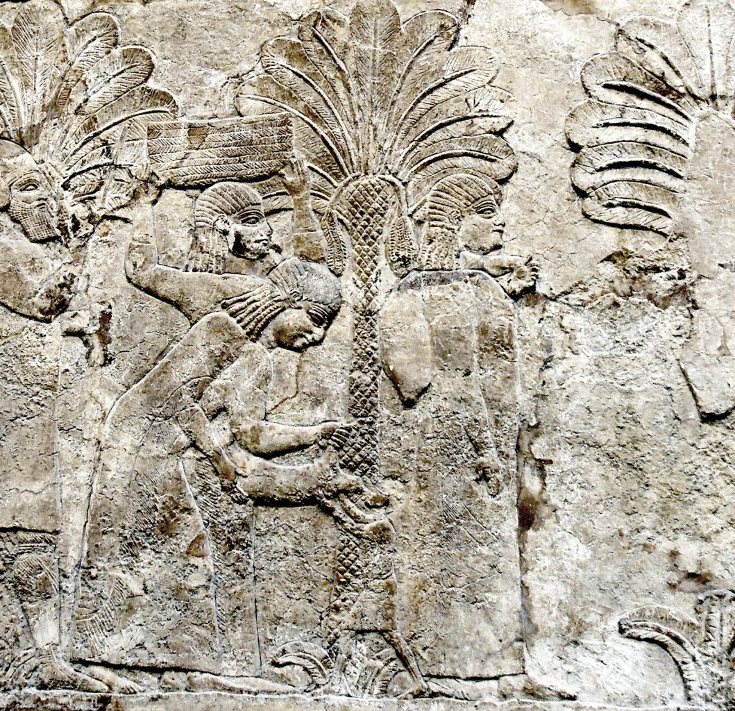 Prisoners_Nineveh_date-palmsDates hail from the spot where the human population exploded after the world woke up from the deep freeze called the Ice Age. Traces of consumption of dates are found in regions of Persia, northern Africa (Arabia), and Indus. Figs and apples, food of the ancient Greeks and Romans, also hail from this region.