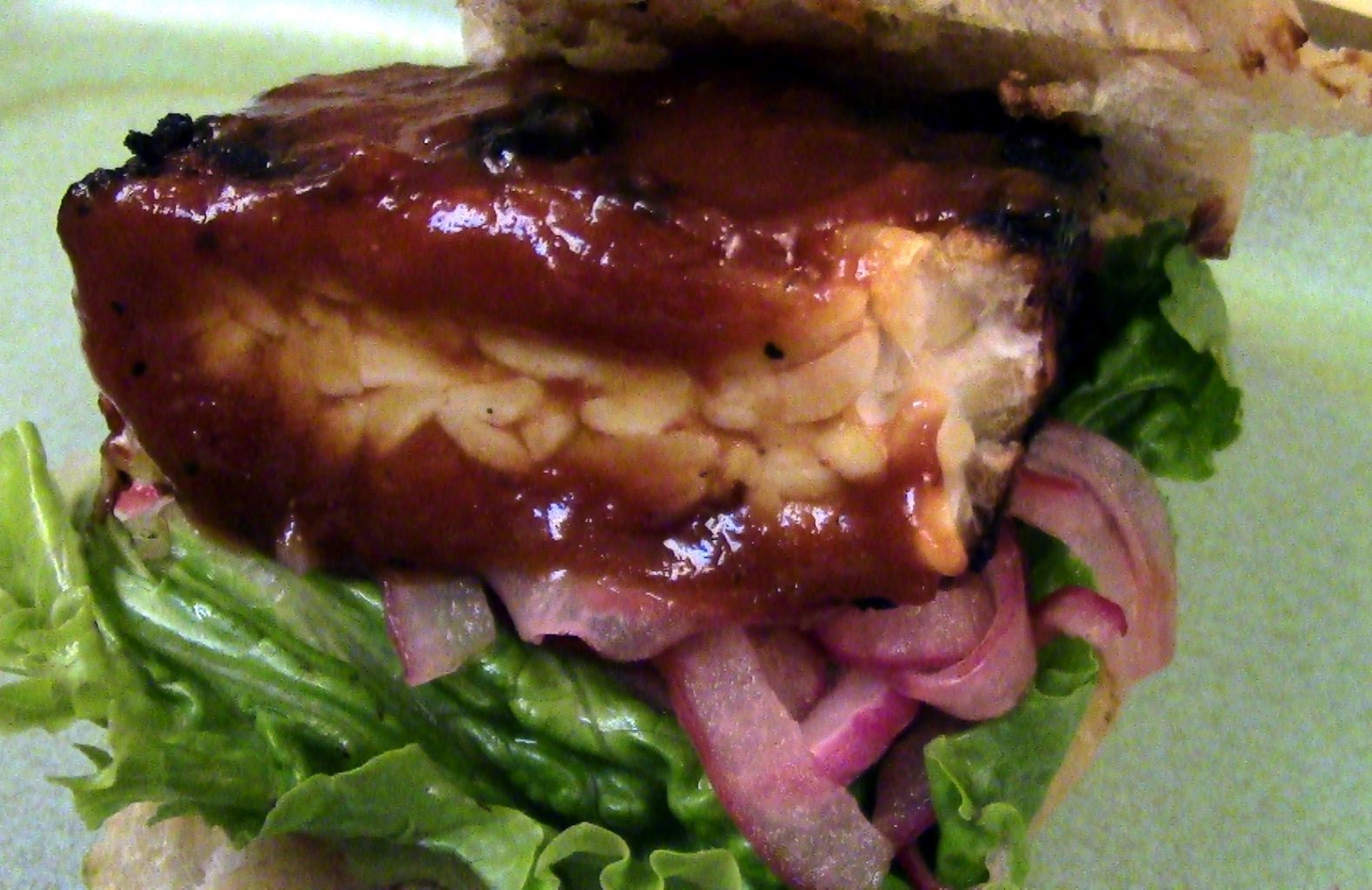 I recently made a really interesting and flavorful barbecue tempeh sandwich. It has grilled barbecue tempeh, pickled red onions, and some green leaf lettuce piled on ciabatta. This is a hearty sandwich that can satisfy any appetite. I serve this with a side of Summer Citrus Coleslaw.