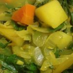 Last weekend as I looked through what was left in the fridge, I noticed I hadn’t used up the cabbage and I had some potatoes that needed cooking. Then, there’s carrots, always carrots. I went to work slicing and dicing in order to produce a soup.