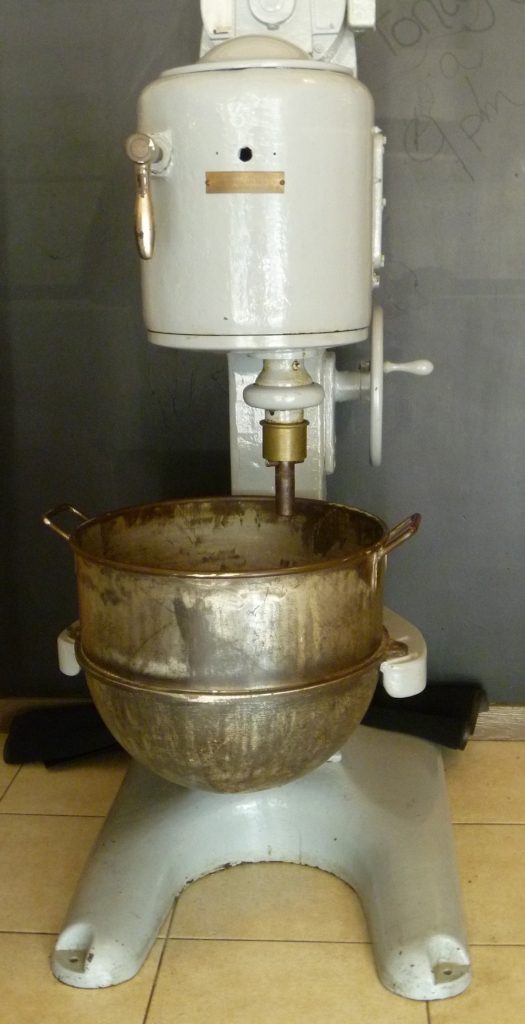 Alternately, chefs had me “whip” the beans. The pinto beans are cooked in large, industrial pots on gas stove tops covered with aluminum foil. At least one cook has the responsibility of checking the water levels of the beans throughout the day, making sure they don’t go dry and burn (like bacon, beans get burned on a regular basis due to negligence). When the beans are done, they are dumped into industrial mixers the height of an average human and they get beaten to a pulp with the whisk attachment. The one advantage of mashing the beans with the whisk? You don’t have to keep a hold of that damn wand, the machine does the work. The disadvantage? It’s a two-step process not one.
